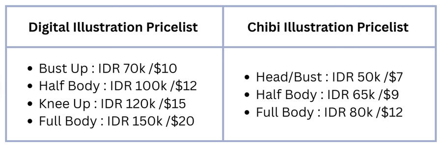 ✦ Pengiriman hasil komisi menggunakan ekpedisi lokal/via Shopee (harga komisi belum termasuk ongkir)